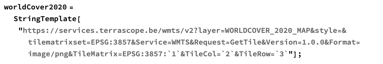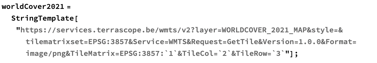 The ESA WorldCover dataset is a great resource for understanding land cover patterns, and luckily for us, we live in a world in which there are many more. Many remote sensing services are available as map tile servers (WMTS), and two of my favourite providers of high quality free remote sensing imagery datasets of this kind, often with global and sometimes even near real time coverage, are Copernicus Marine and NASA GIBS (Global Imagery Browse Services). You can access NASA GIBS remote sensing imagery using the RemoteSensing paclet, which I've previously written about here.