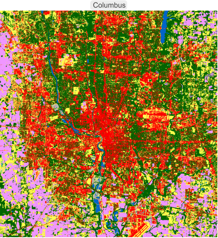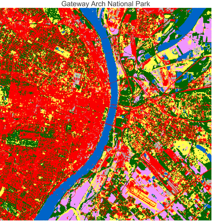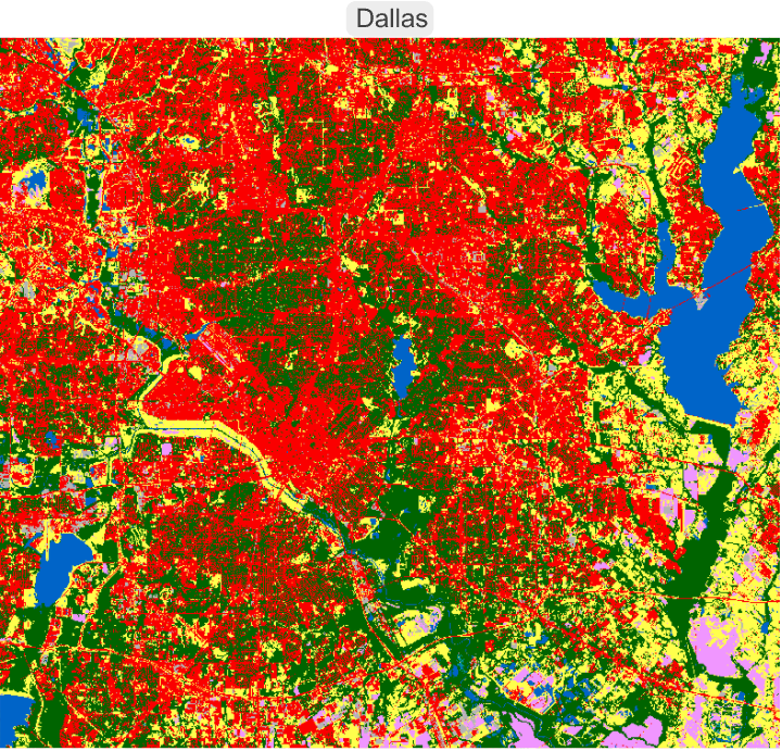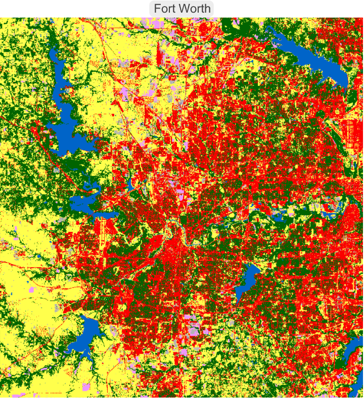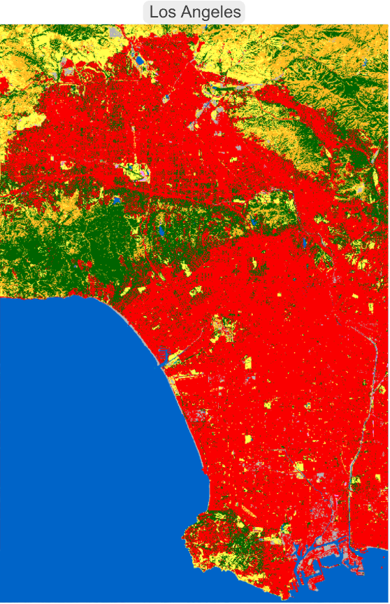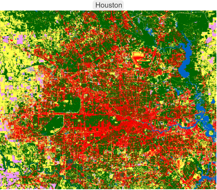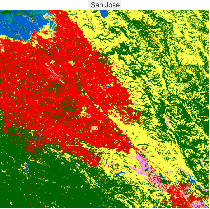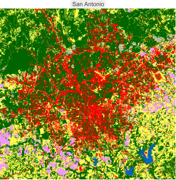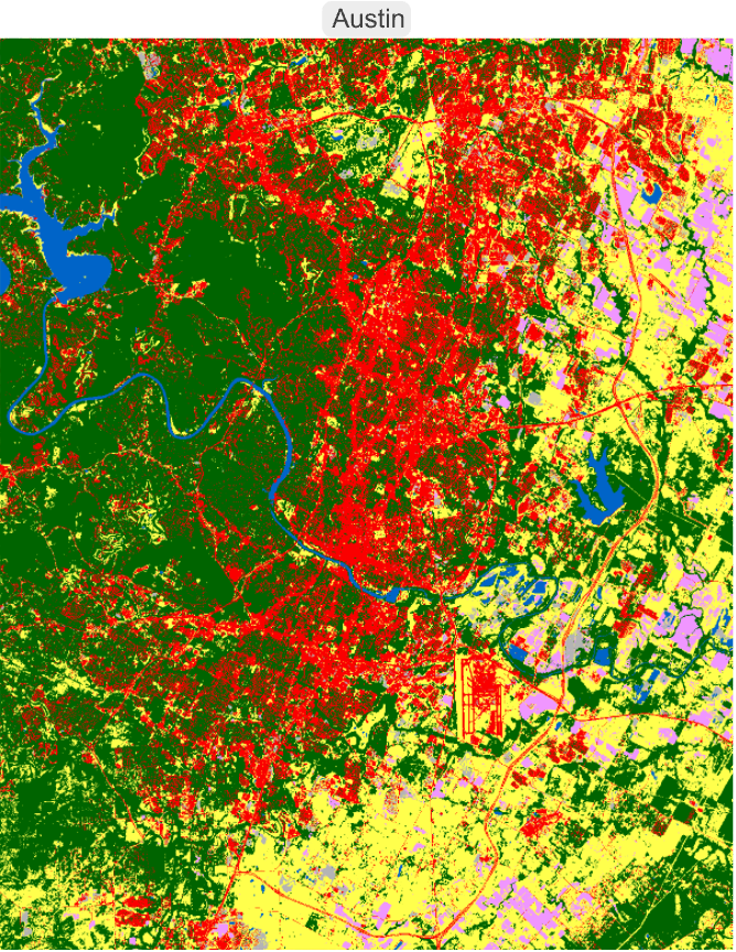 In the following sections, I'll apply the connection to this dataset to automatically survey the land cover around the largest US cities by population, and all 63 US national parks.