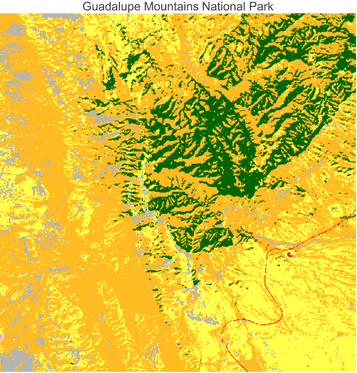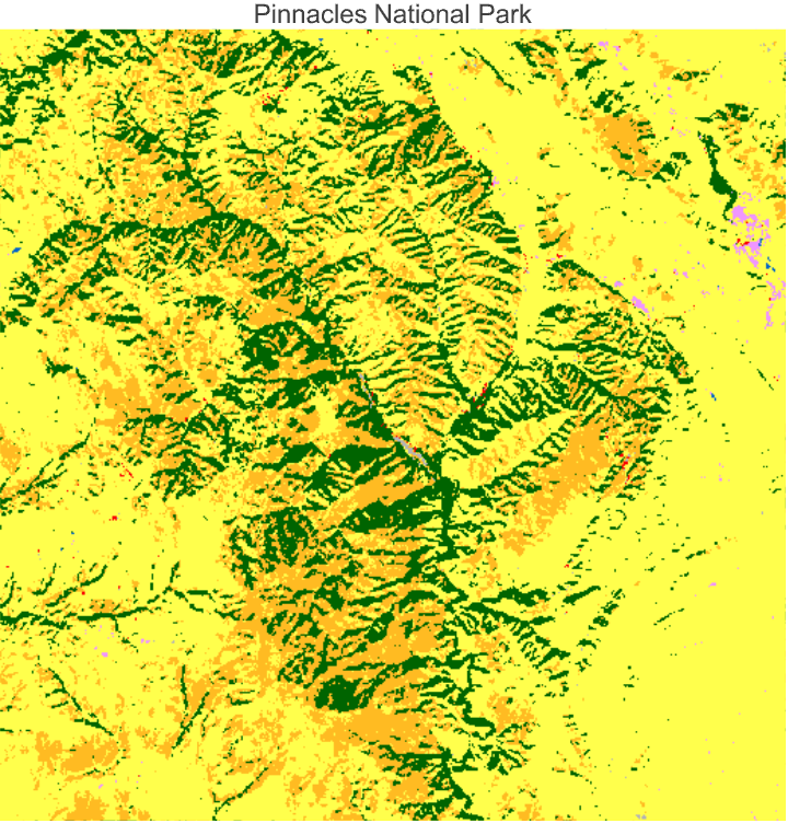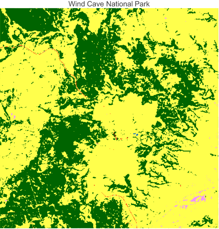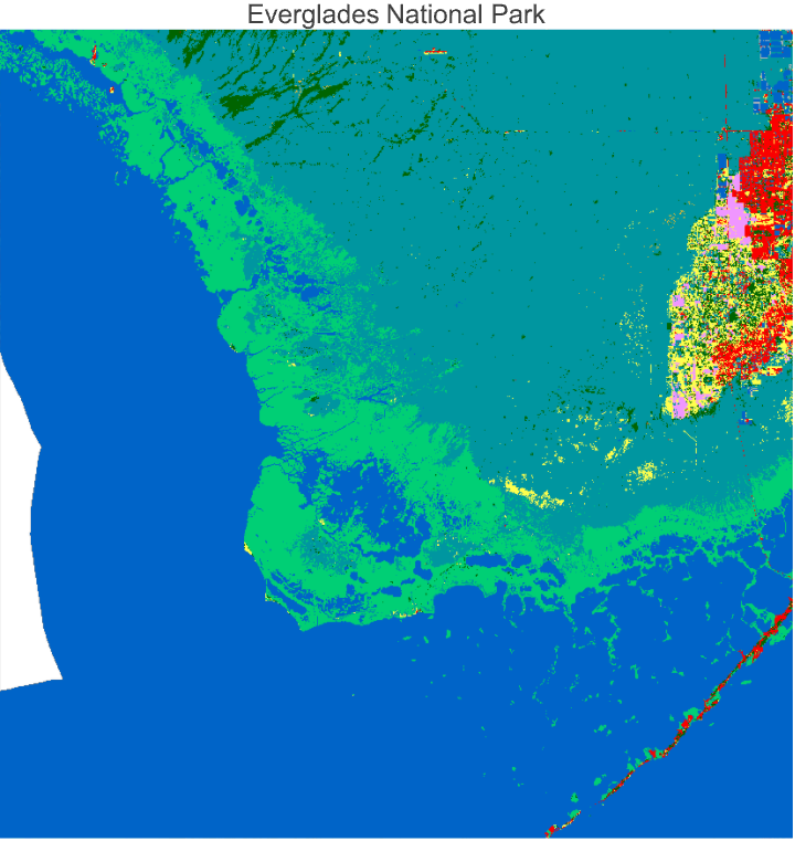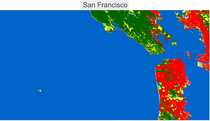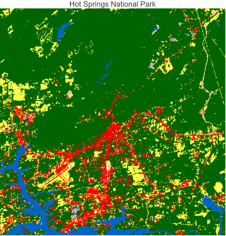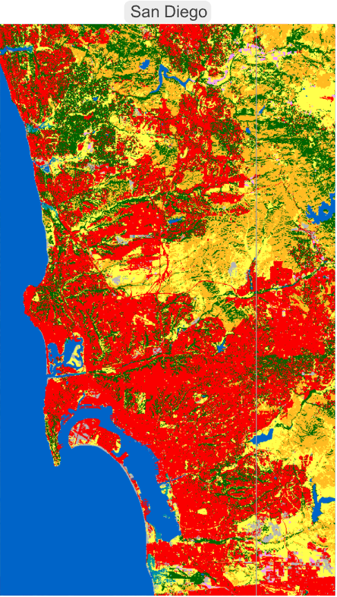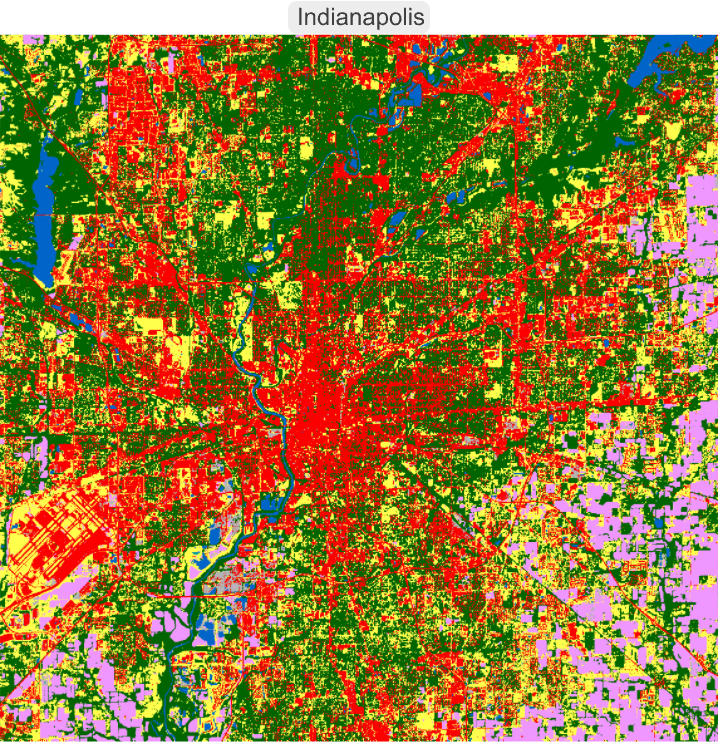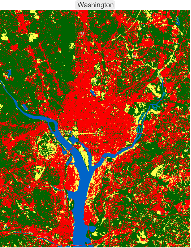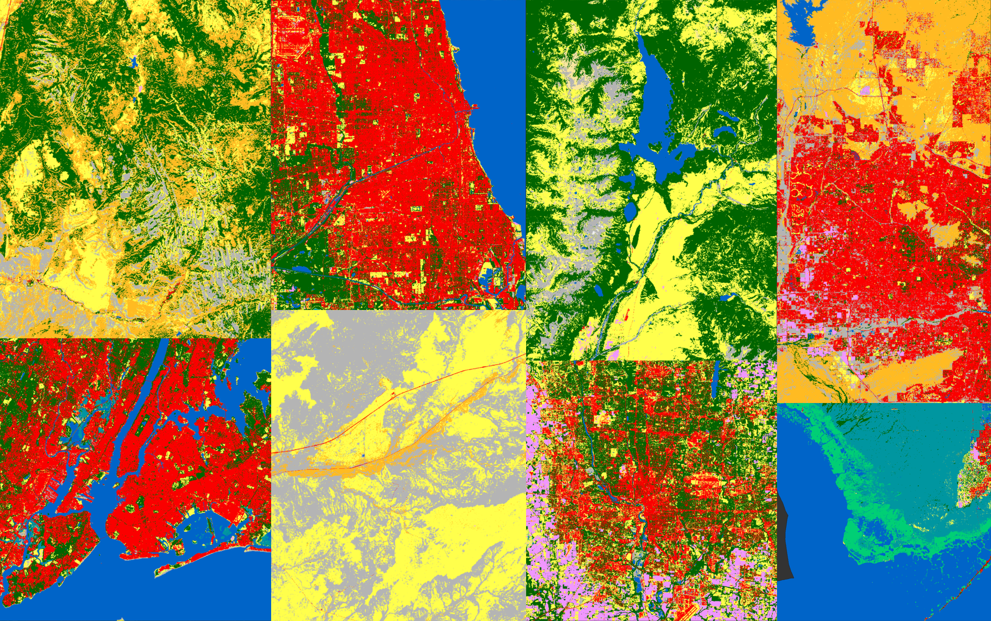 In the following sections, I'll apply the connection to this dataset to automatically survey the land cover around the largest US cities by population, and all 63 US national parks.