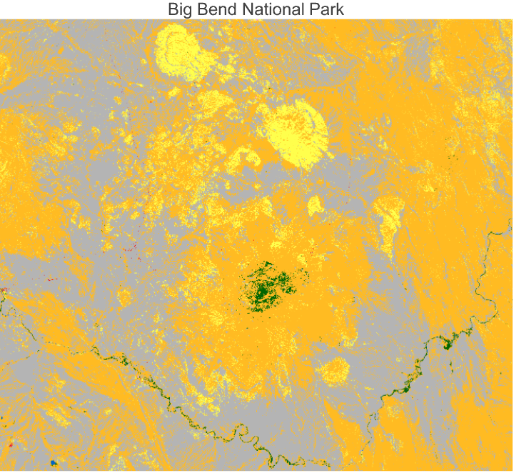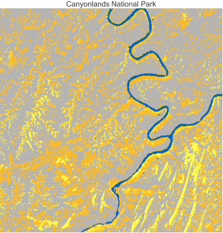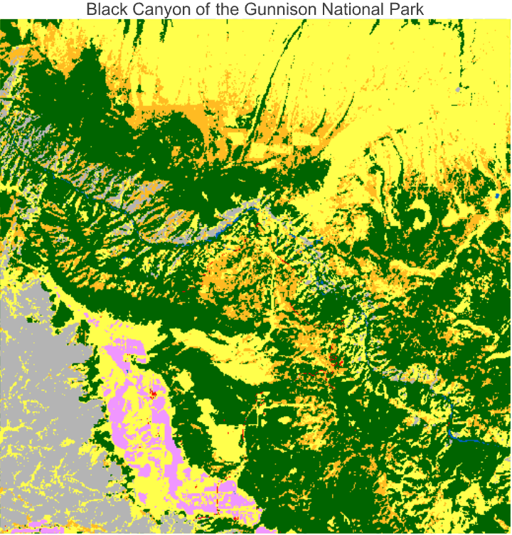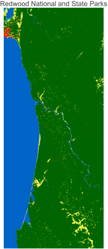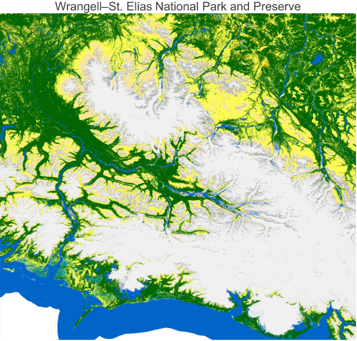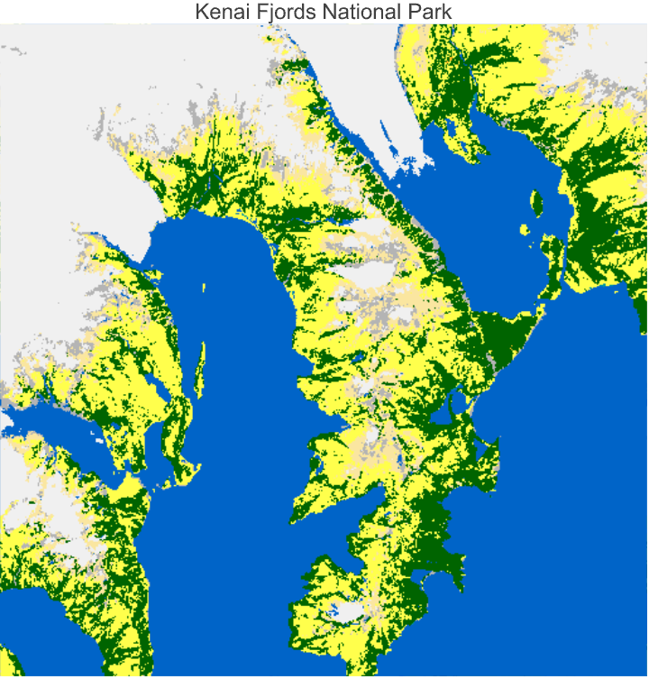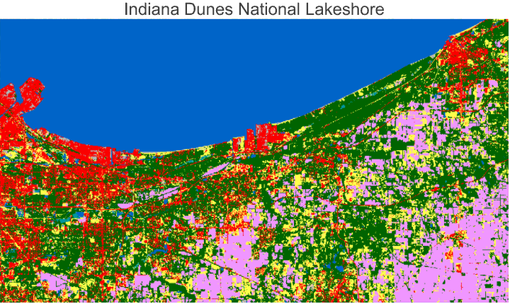 Applying this workflow again to US National Parks, there are important contrasts in the landscape compositions. For instance, Denali and the Everglades have unique dominant cover types: permanent snow and grassland, and herbaceous wetland and mangroves, respectively, that stand apart from the arid shrubland and bare rock of Arches. Other contrasts are defined by topography and hydrography, such as the fragmented coastal forests of Acadia or the steep gradients of the Black Canyon. An outlier, Indiana Dunes is sharply bounded by adjacent urban and agricultural land.