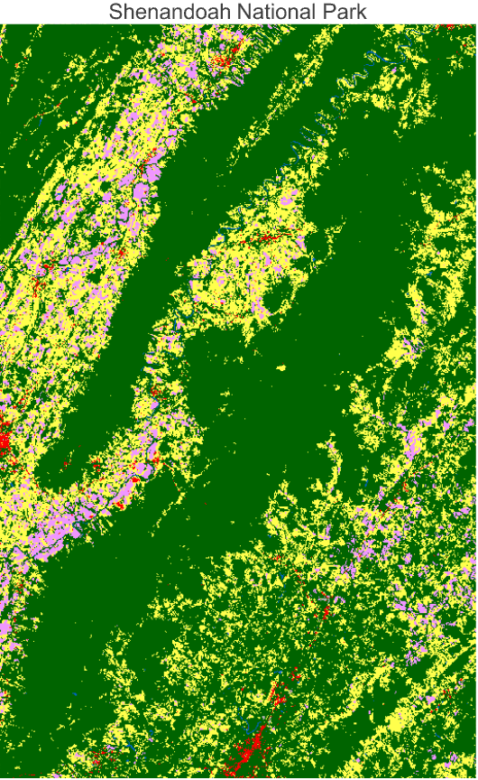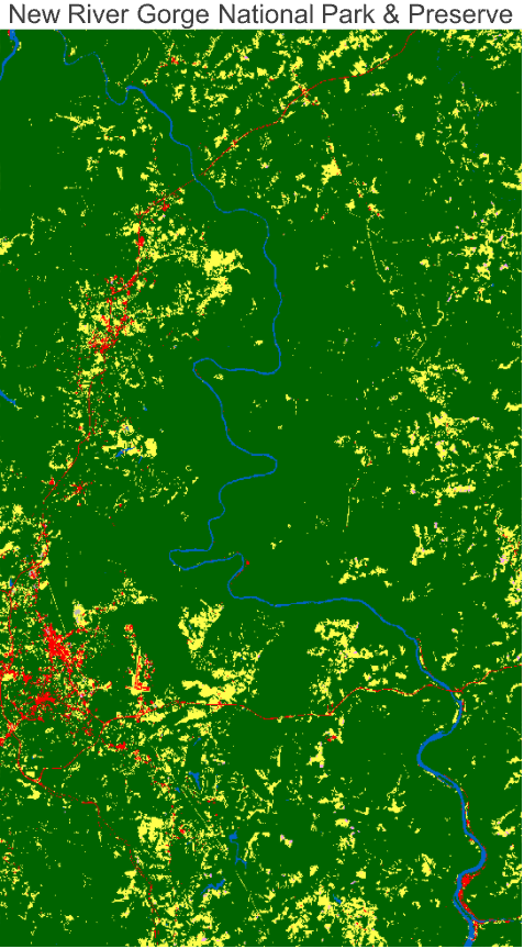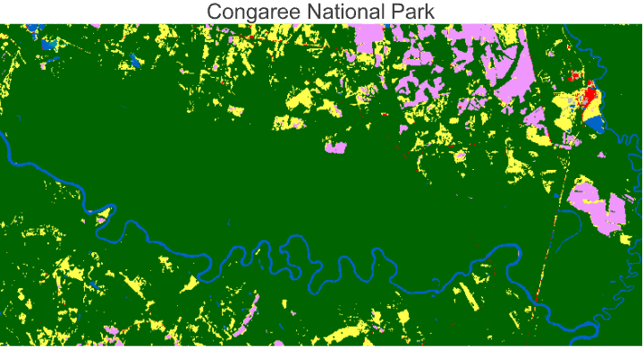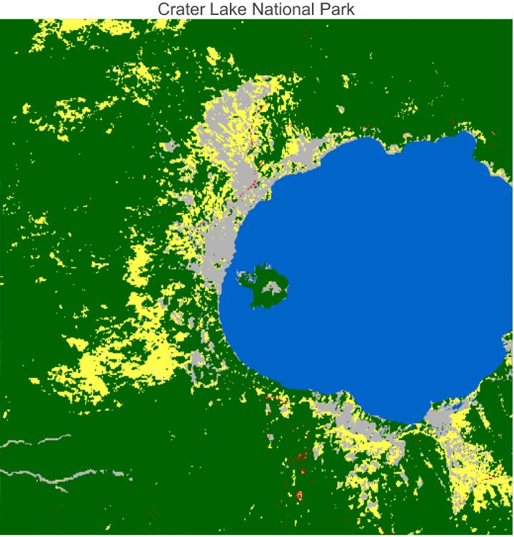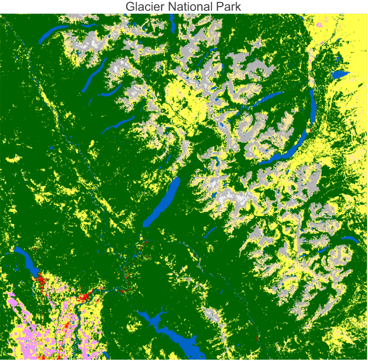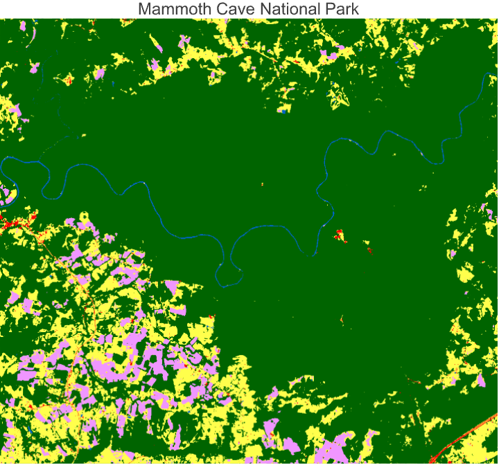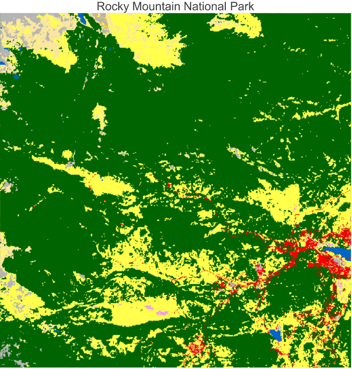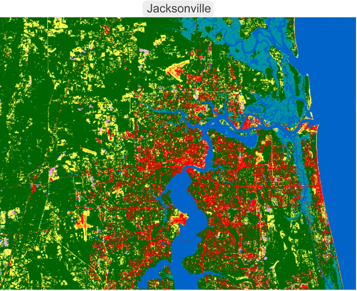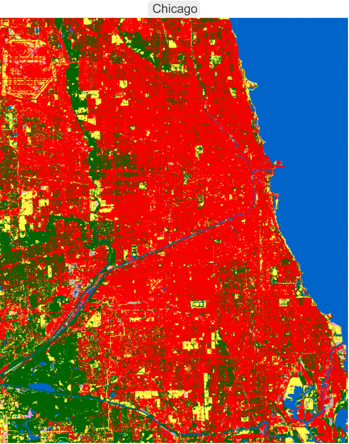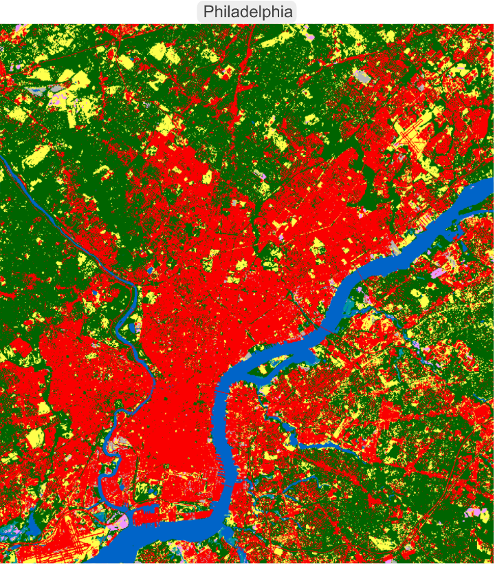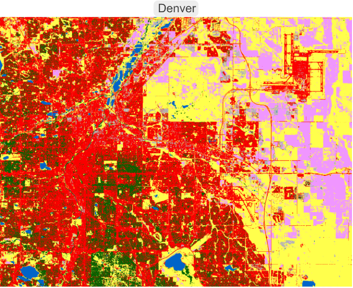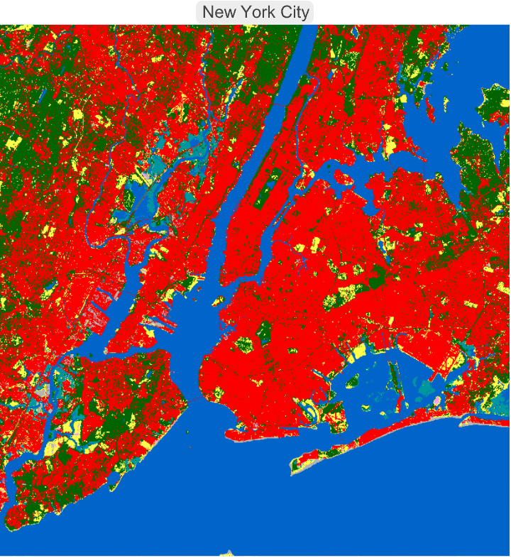 In the following sections, I'll apply the connection to this dataset to automatically survey the land cover around the largest US cities by population, and all 63 US national parks.