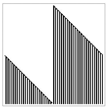 Trajectory of a rule 30 CA confined to a region that wraps around the periodic boundaries of the simulation space: