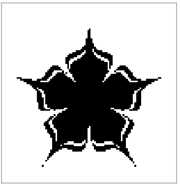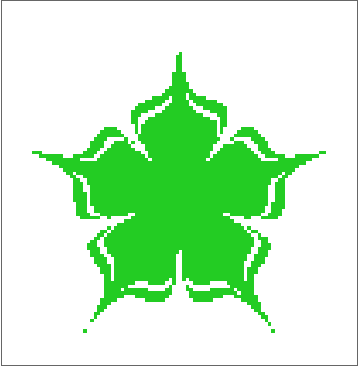 Set up and run a 20 step simulation with the chosen rules, rule domains defined by the image mask, and an initial condition array made of all zeros: