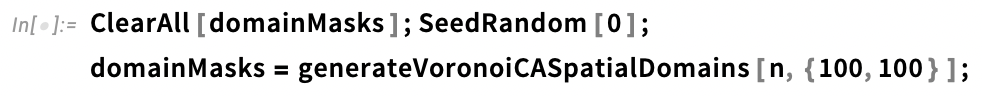 We can arbitrarily partition the simulation space and assign whichever parts we choose to whichever rules we like. Here, I've used a helper function called generateVoronoiCASpatialDomains (defined in the Code Initialisation section of the Wolfram Community version of this essay) to generate the rule domain definitions array.