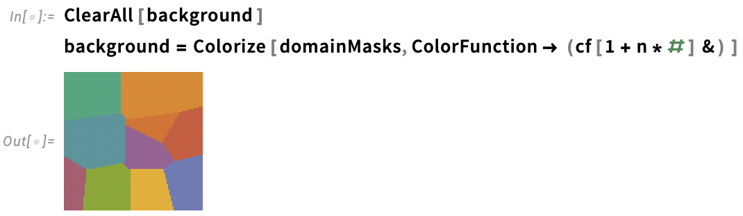 The CoexistingCellularAutomata function works with arbitrary valid rule domain definitions. Any array of positive or zero integer values is a valid rule domain mask. This means we can use posterized images as rule domain specifications.
