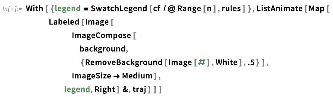 to the CoexistingCellularAutomata function call, we restrict the rule domains to all cells other than those near the border, and set the excluded border cells to be equal to 0 throughout the simulation: