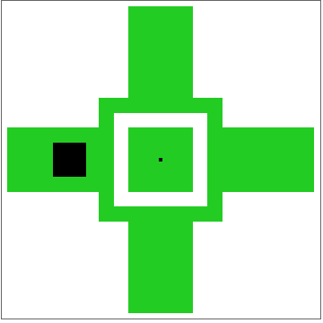 In the plot above, the green region represents the spatial domain of the automaton rule. Changes made to the state by the rule will only take effect inside the green region.